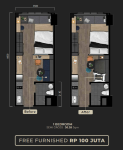 1 Bedroom bisa dijadiin 2 Bedroom 36,28 m2